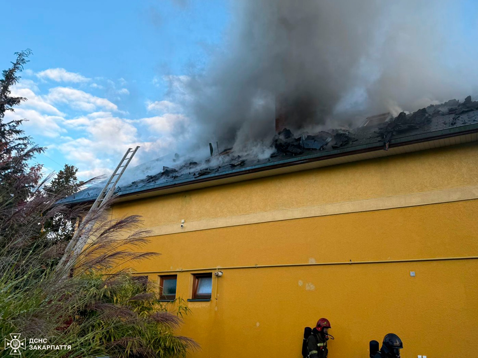Як повідомили у пресслужбі ДСНС Закарпаття, виклик про загоряння надійшов о 12:40. Вогонь знищив покрівлю на площі 160 кв.м та пошкодив побутові речі. Наразі причину пожежі та суму завданих збитків зʼясовують.